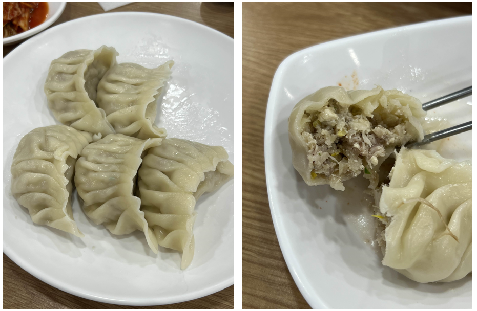 만두가 나왔습니다. 만두는 15,000원에 6알이 나옵니다. 물론 수제 만두입니다. 피는 쫄깃했고 속은 촉촉 육, 채즙이 흘러나오고 전체적으로 자극적이지 않은 담백한 두부+숙주+고기 스타일의 만두입니다. 저는 만두의 간을 중요시하는데요. 이 만두는 간도 완벽했고 풍미도 좋았습니다. 생존하셨습니다.
