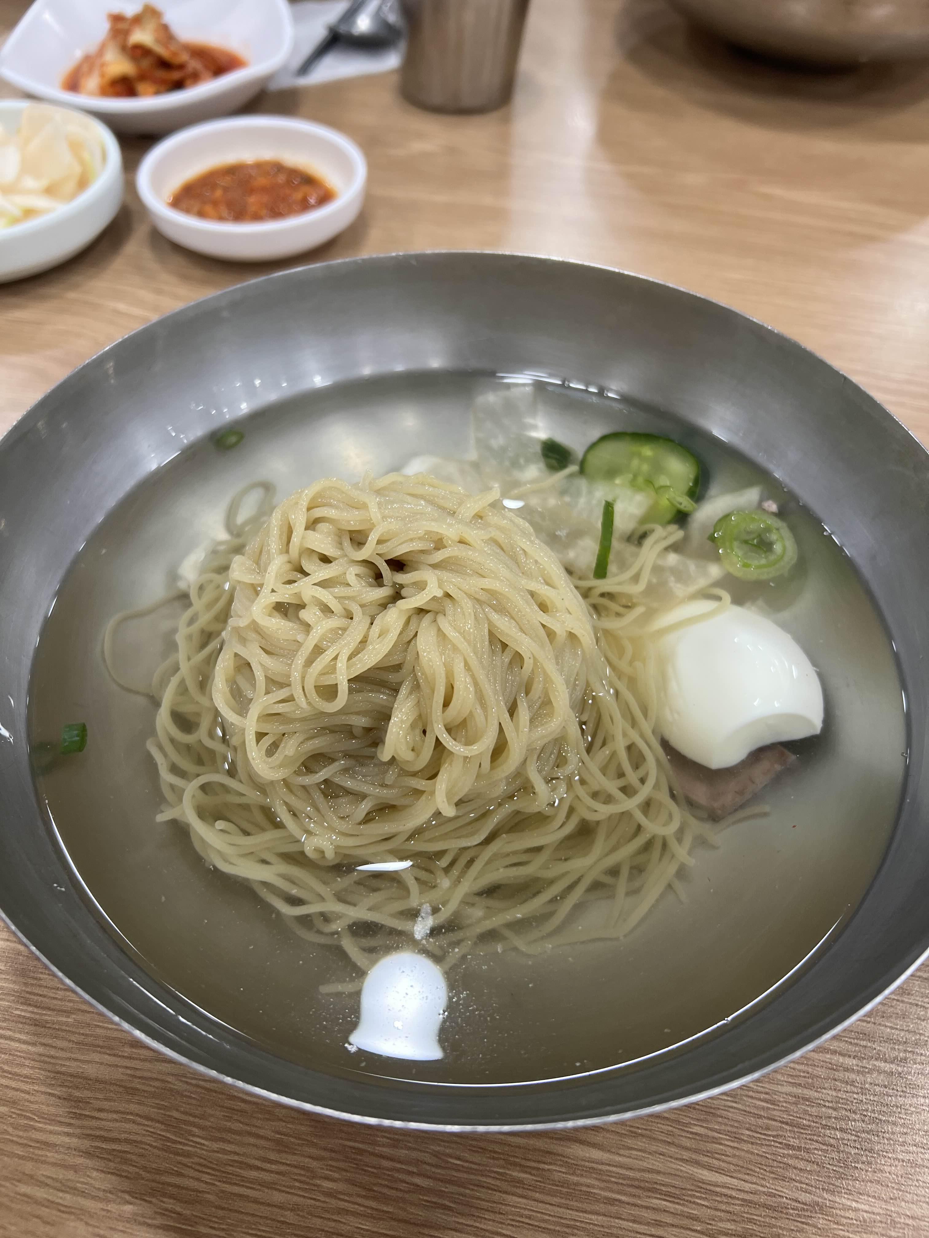 근데 진미평양냉면은 간이 2배 진해서인지 저에겐 2배 더 맛있었습니다. 만족도는 5배 높았어요. 평소에 간을 세게 드시는 분들이 평양냉면에 도전하시거나 평양냉면을 처음 도전해 보시는 지인분들을 데려가시기에는 을밀대보다 진미평양냉면이 적합하다고 생각합니다. 참고해 주시와요?