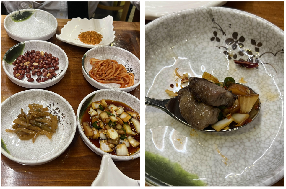 저기 기본찬이 4가지 저렇게 나오는데 뭐 저는 양파절임밖에 안먹어봤습니다. 저 양파절임을 숟가락에 자작하게 올린다음 잘 익은 양고기를 두 점 이상 얹고 한 입에 와앙! 먹으면? 하아... 눈돌아갑니다 고소한 양고기 풍미가 느껴질 때 양파가 "나야... 양파초절임..."하고 말을 걸어오면서 그때부터는 둘이서 춤추고 노래하고 백덤블링 304번 하는데 후... 암튼 맛있습니다. 지금 대충 헛소리하면서 쓰는 것 같다고요? 후... 틀린 말은 아닌데 그만 큼 맛있다는 소리입니다. 광고아니고 제 돈 주고 먹었어요. 전 당당합니다.