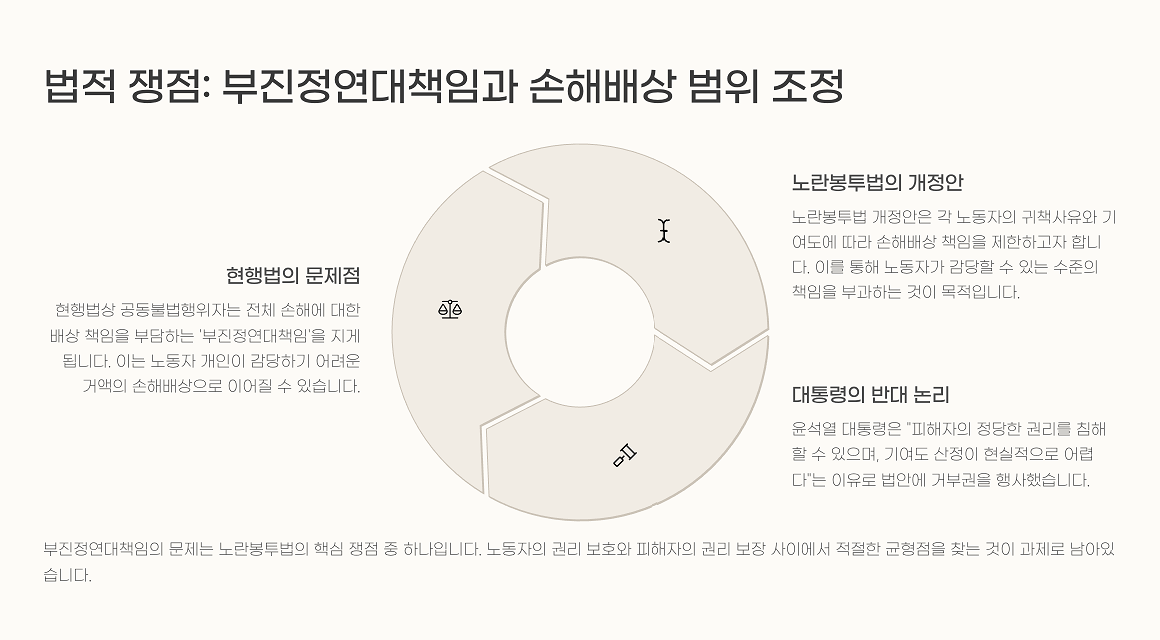 간단히 말해, 노동자들이 정당한 파업을 했을 때 수십억, 수백억 원의 소송 위협에 노출되는 것을 막아주는 방패막이라 할 수 있죠.