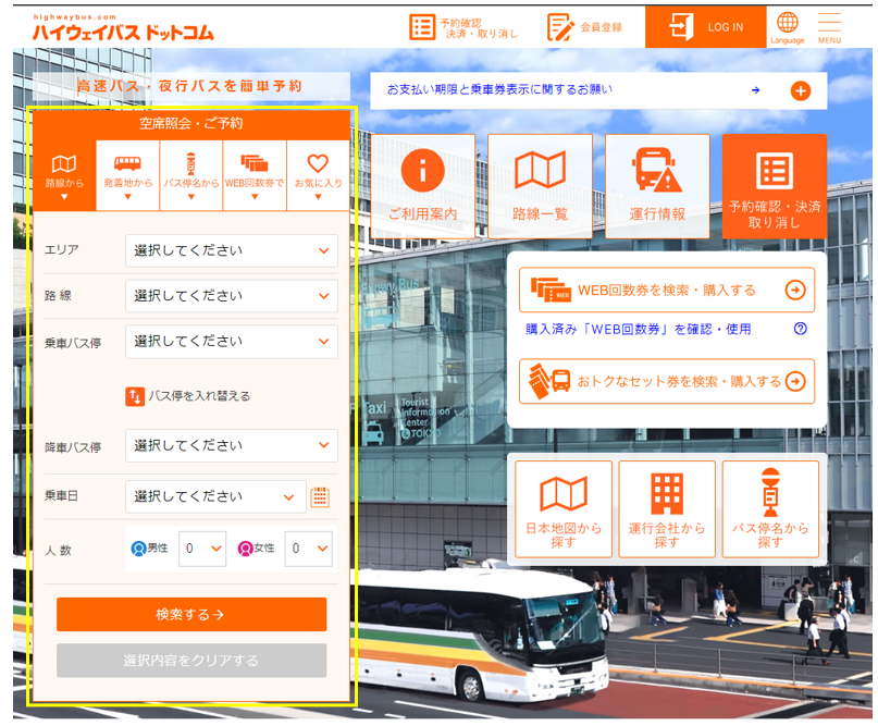 高速バスのハイウェイバスドットコム 全国の高速バスを簡単予約