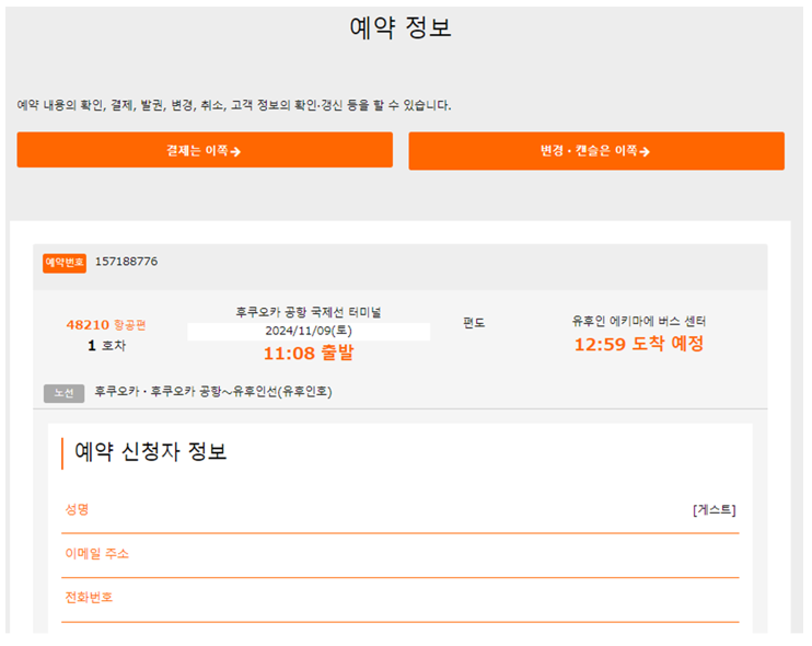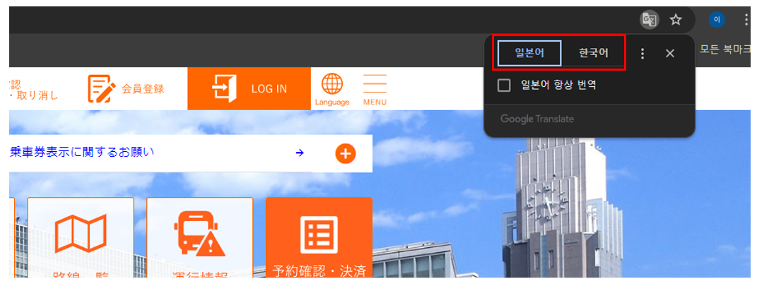 1. 유후인 버스 예약 사이트(로그인, 한국어 번역)