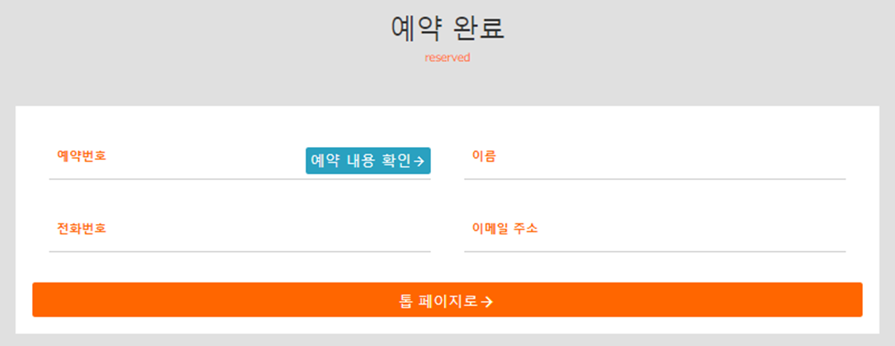 3) 하면 이런 모습인데 흔히 나와있는 예약 정보 화면과 다른 폼이라 헷갈리니까 비추천!
