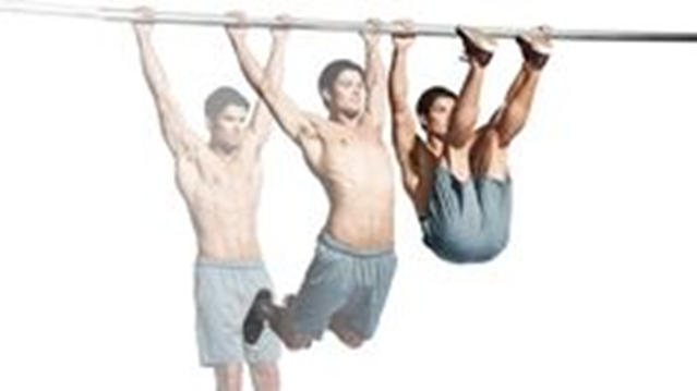 다음은 철봉에 매달린 체로 반동을 주어 자신의 발가락 끝을 철봉에 닿게 하는 동작인 토투바가 있습니다. 이 동작 역시 수행이 안되시는 분들을 위해서 무릎을 배꼽 높이까지만 올리는 니레이즈(knee raise) 등 난이도 조절이 가능한 동작입니다.