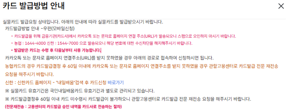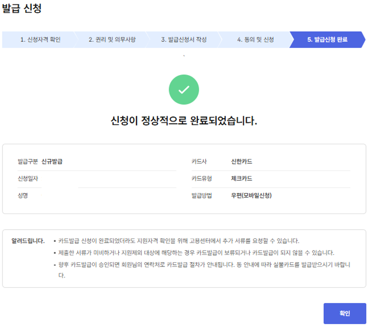 - 심사 후 카드 수령 (3~5일 소요)