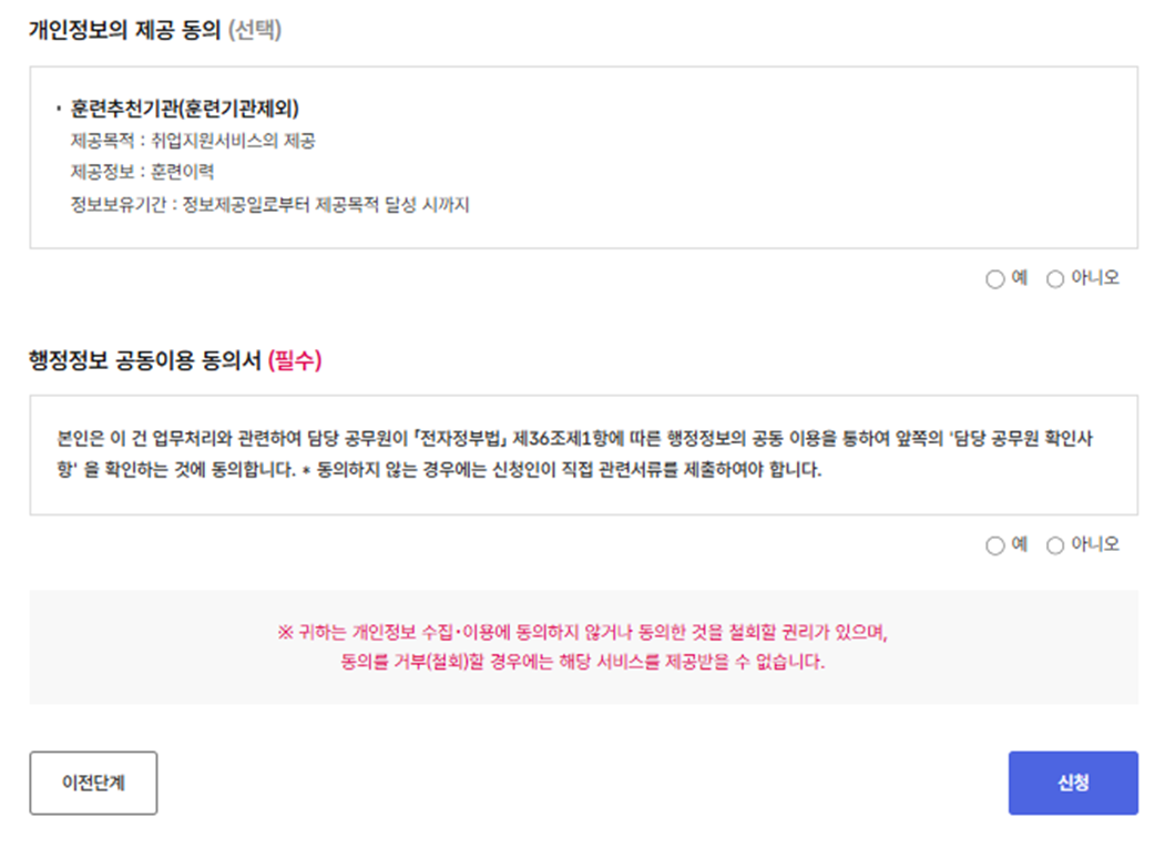 개인정보 동의 하시고 신청 누르시면 정상적으로 신청이 됩니다.